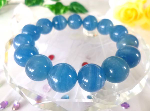 > ☆希少☆高周波パワー☆不安・ストレス解消☆癒しとやすらぎ☆高品質AAA☆アルゼンチン産☆ブルーカルサイト☆大珠14mm☆17cm☆