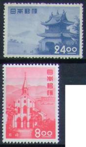 > 昔懐かしい切手 観光地百選S 長崎(都邑)8.00円24.00円 2枚組 1951.9.15発行