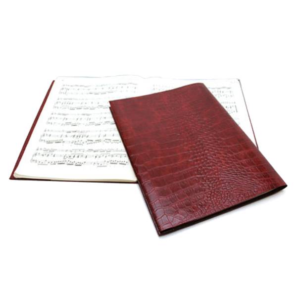 - 送料無料★お手入れいらずのリサイクルレザーで作った菊倍サイズブックカバー★クロコ型押しボルドー★教科書楽譜用