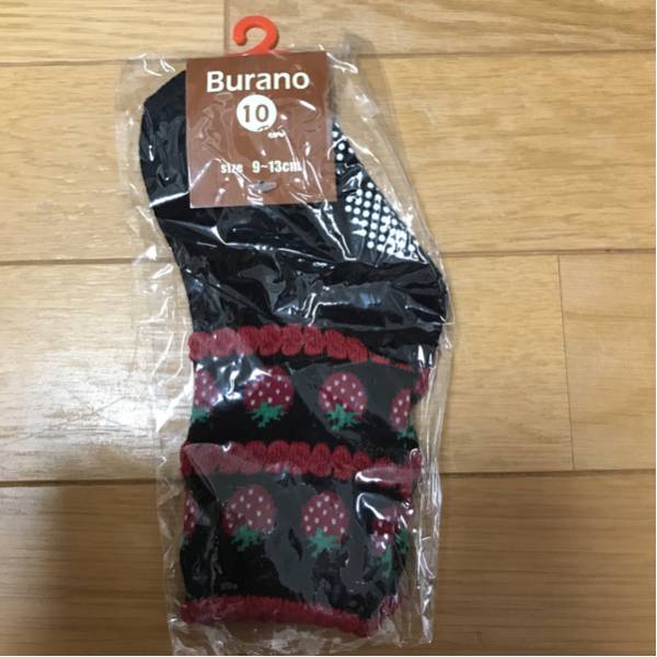 - 新品未使用 Burano イチゴ柄靴下 9~13cm 黒