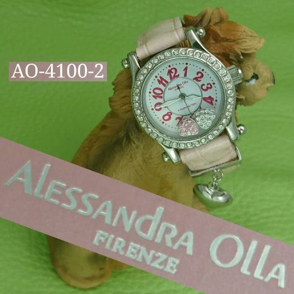 > ALESSANDRA OLLA アレサンドラ オーラ レディース ウォッチ 腕時計 ライトピンク 本革 ベルト 中古品 W055