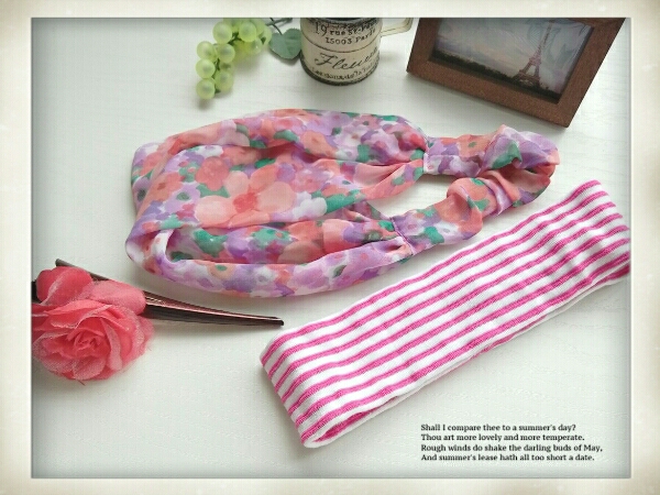 - 花柄 ピンク系 ヘアバンド ターバン クリップ セットまとめて レディース ヘアーアクセサリー 髪飾り C