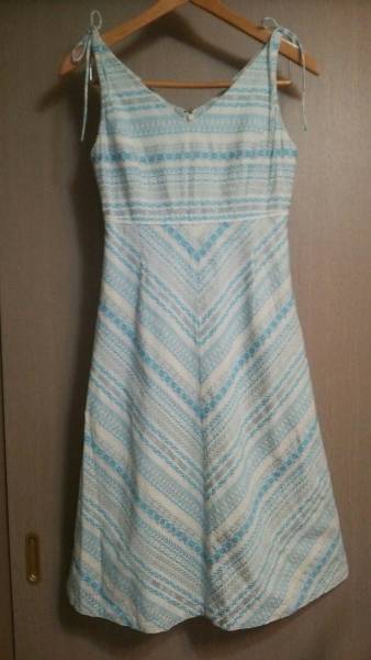- ぺルスクープパリ ノースリーブ ワンピース 白 スカイブルー 水色 ボーダー ストライプ パーティードレス リゾートワンピース
