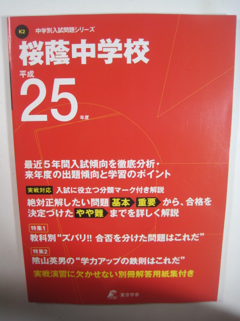 - 東京学参 桜蔭中学校 2013 平成25 中学入試 中学受験 小学生用 (解答用紙付属) 桜蔭中学