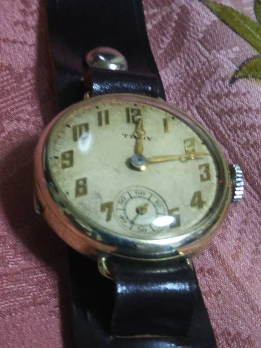 - コレクターズアイテム 純金18Kケース、スイスティルデイスモセコ1920年代手造り本革ベルト