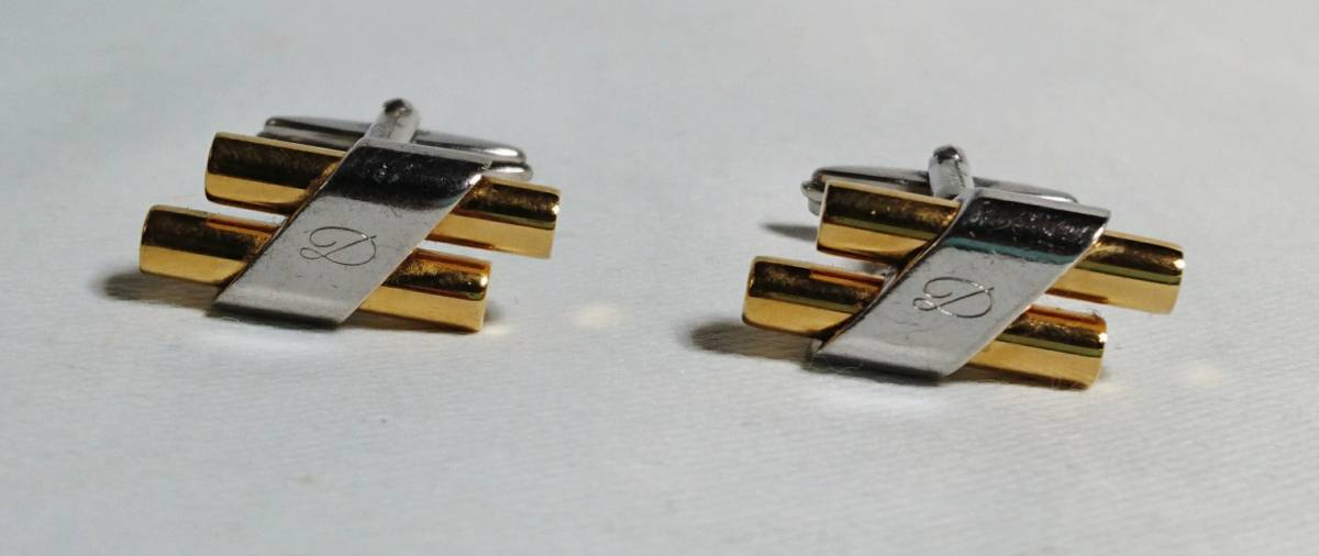 > 正規良 入手困難! S.T.Dupont デュポン Dロゴ ヴィンテージカフス 金×銀 ゴールド×シルバーコンビカラーカフリンクス アンティークボタン