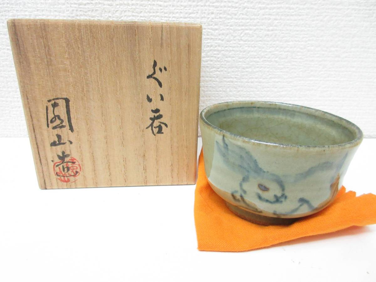- 極美品■園山作 ぐい呑 巳卯 兎 うさぎ 酒器 箱入 黄布 管理1709 F-6