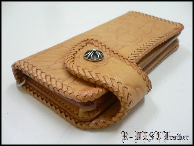 - 牛革スカル髑髏カービング レザーウォレット ヌメ/1点限り