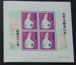 - 未使用 昔の切手 年賀小型シート「のごみ人形」 1963.1.20.発行b