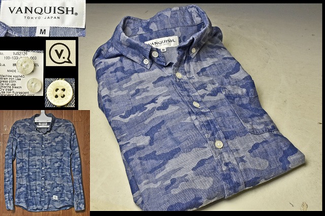 - 【ヴァンキッシュ VANQUISH】ブルーカモフラージュ 長袖ボタンダウンシャツ サイズ(M)迷彩柄 VJS-2126