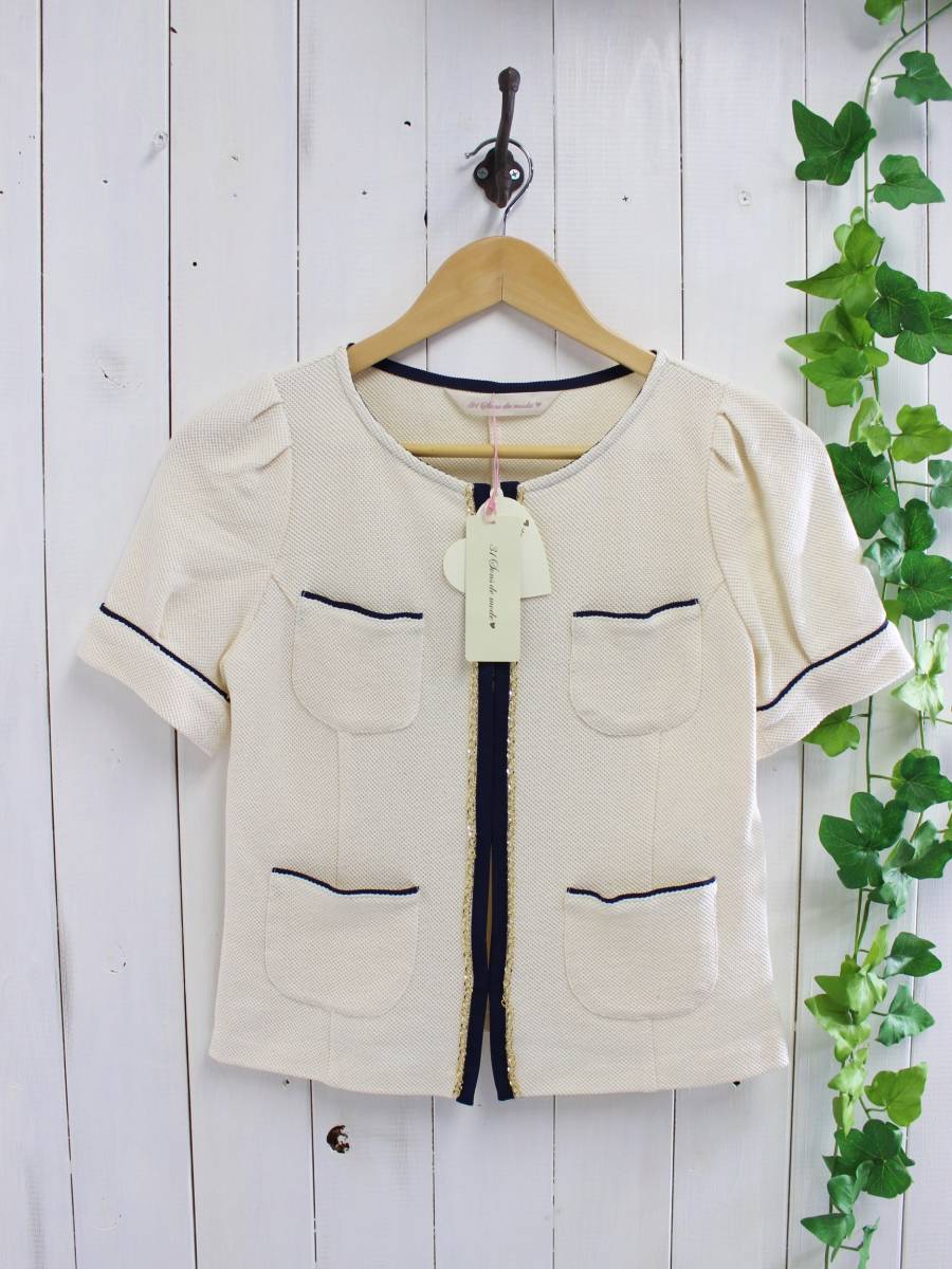 > 新品 訳有り*31 Sons de mode(トランテアンソンドゥモード)*パイピング 鹿の子 ノーカラー ジャケット(36) 定価11,000円