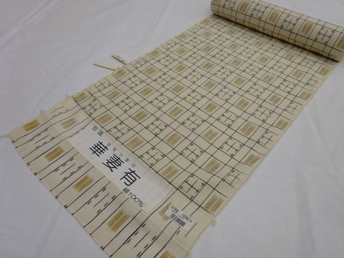 - 新品・正絹・反物★新潟県・十日町紬着尺★生成り色地に絣柄です