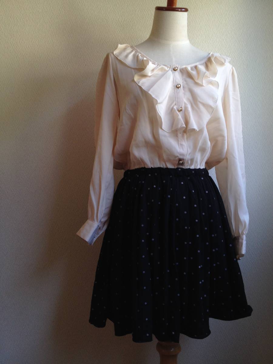 - ★HUDSON honey ハドソンハニー★生地切り替えのセットアップ風長袖ワンピース★M★
