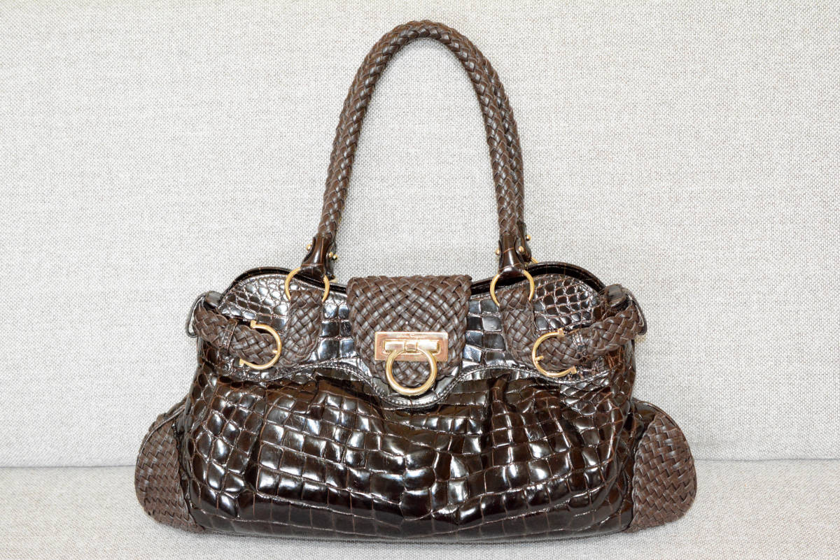- フェラガモ マリーサ クロコダイル ハンド バッグ 極上 逸品 茶 ブラウン
