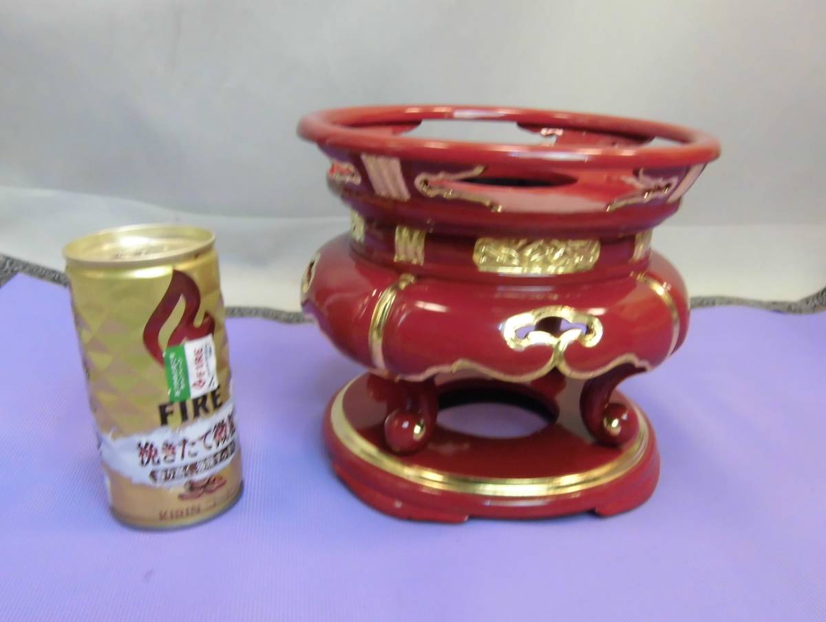 - 仏具 木製 朱・純金塗り 丸金台 5寸 (内径14.8cm高さ15.0cm)