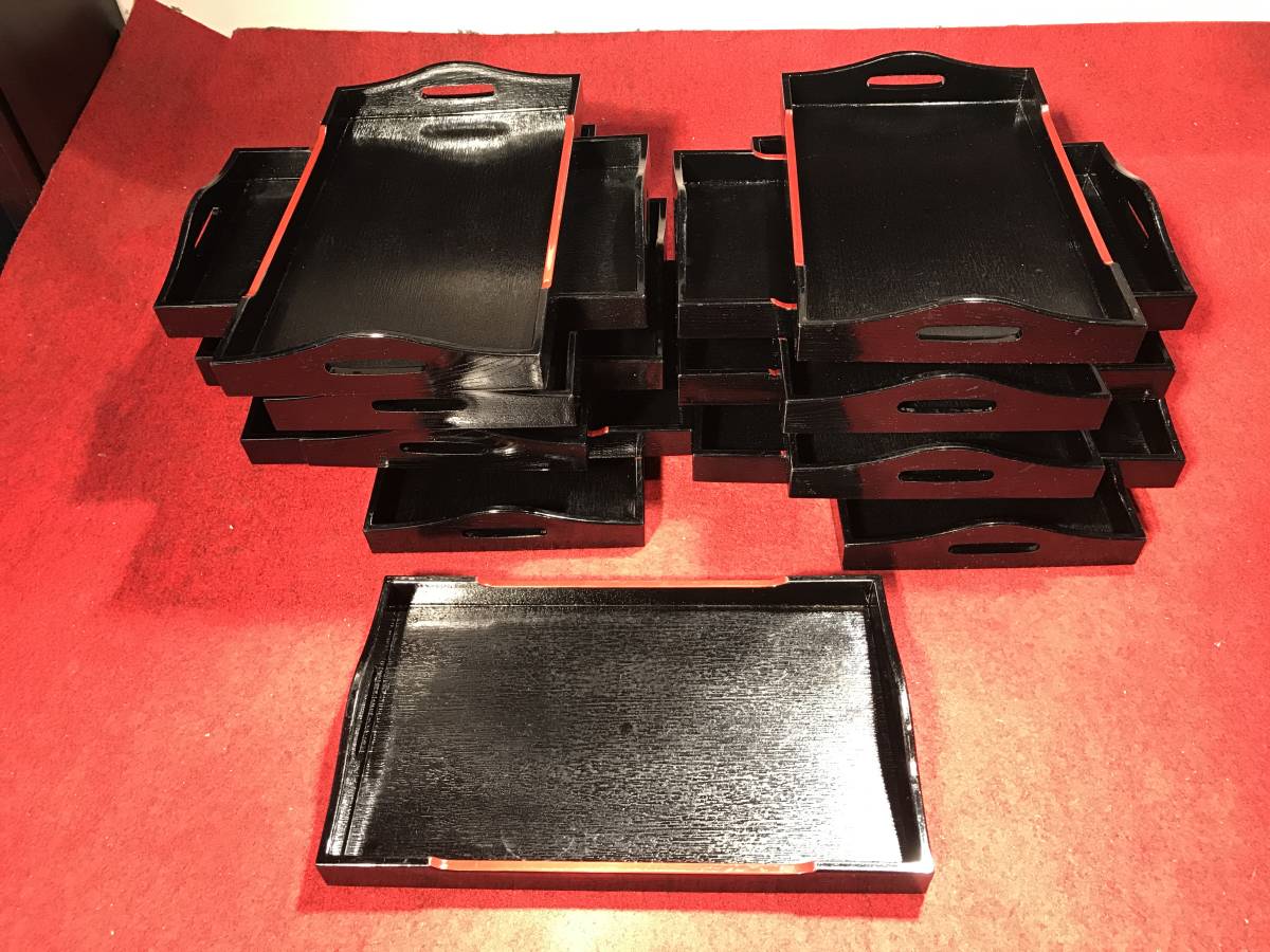 - お盆 15枚 若泉漆器 カスター盆 黒天朱 9寸 トレー 角型 樹脂製 和食器 業務用 大量 中古