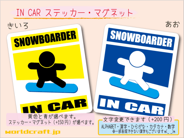 > ■_ IN CARステッカースノーボード!青A■スノボ 1枚 色・マグネット選択可■車に乗ってます おもしろ 耐水シール☆_ot