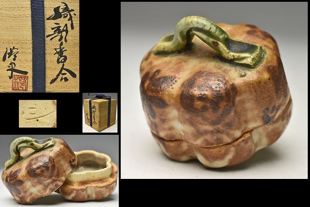 - 永江港史 ★ 織部香合 ★ 共箱 ★ 香道具 ★ 茶道具 ★ 希少作家 ★
