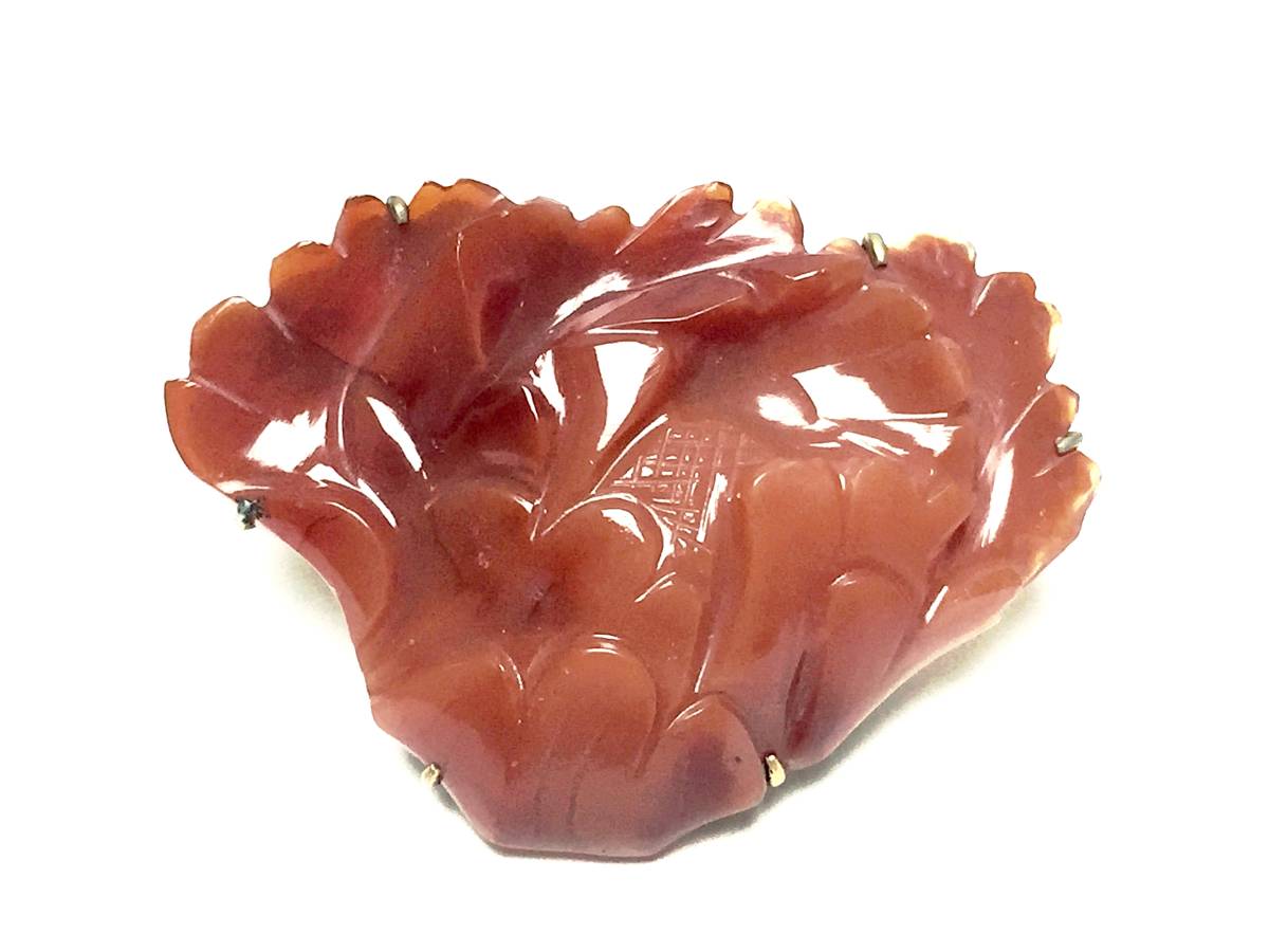 - 【古美道】赤瑪瑙 牡丹彫刻 アンティーク帯留 和装小物 78908110