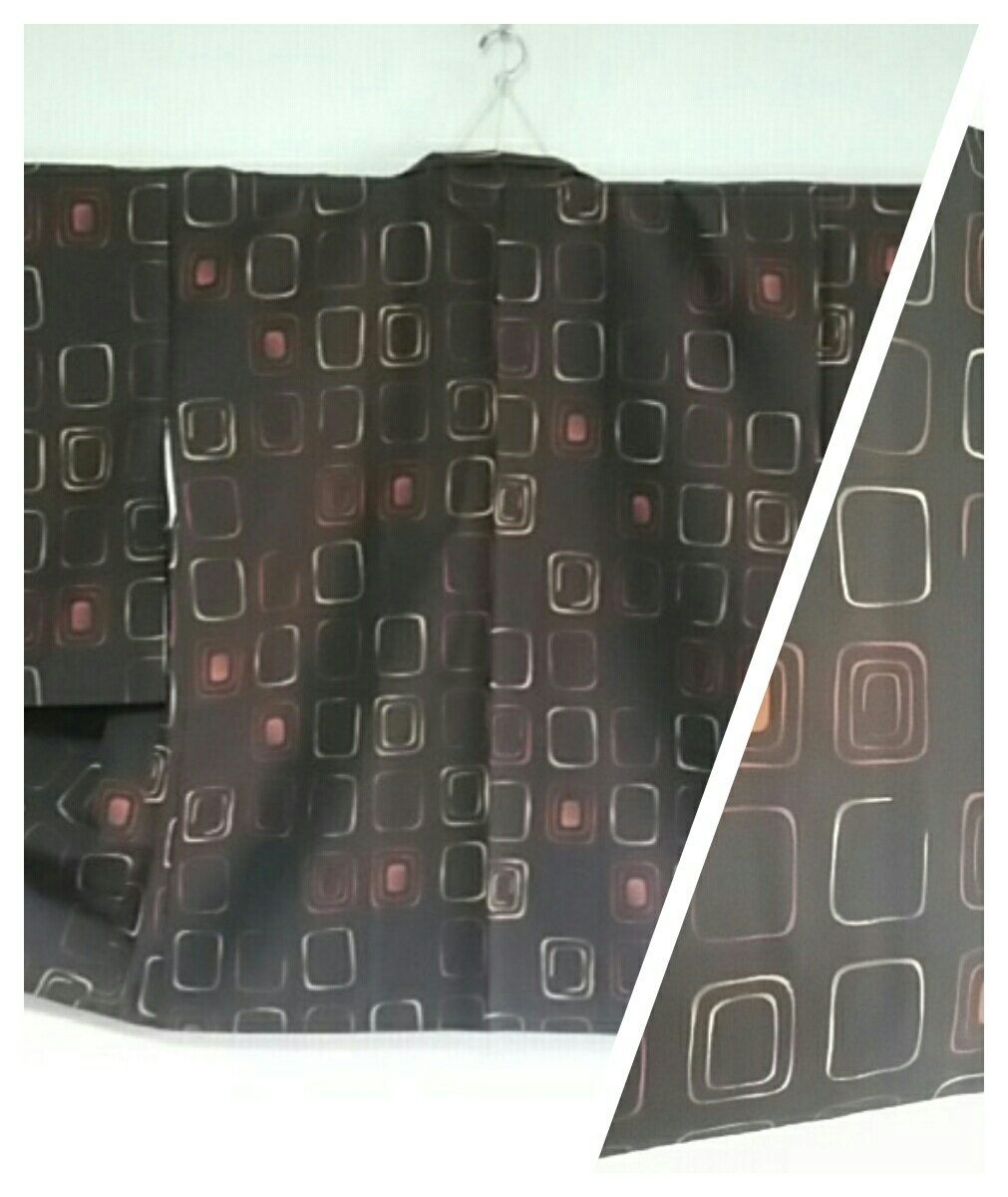 - [お洒落羽織]正絹/袷/羽織丈73.5cm/こげ茶色の生地/羽織紐