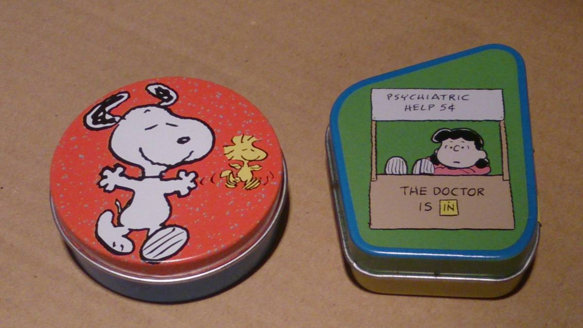 - 直輸入品 ピーナッツ スヌーピー 米国VANDOR社製 ブリキ タブレットケース ①円型+②変形角型 計2点セット※未使用/2000年前後の品/稀少品