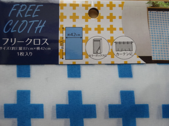 - つ:新品未使用★フリークロス★白×青色クロス模様・87×42cm・カラーボックス目隠し・小窓