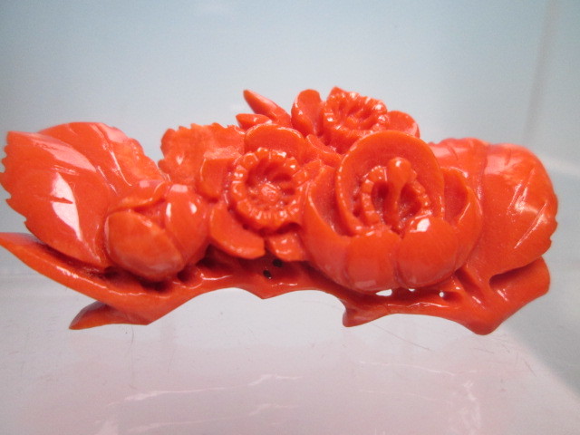 - ☆アンティーク・本珊瑚 花彫刻の帯留め 10g
