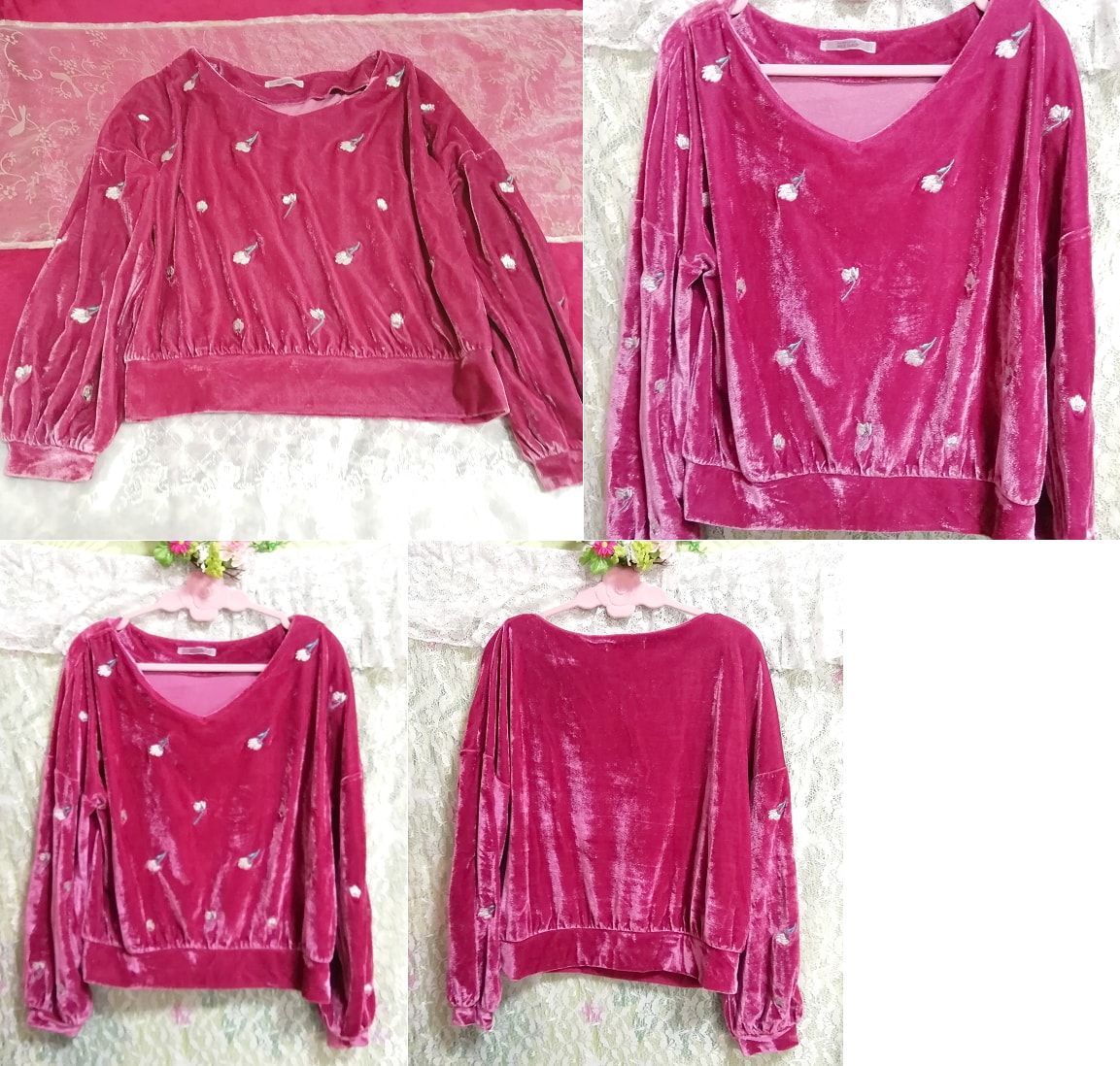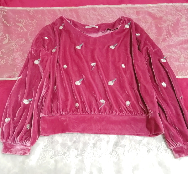 > ピンク光沢長袖花柄チュニック/トップス Pink luster long sleeve flower pattern tunic tops