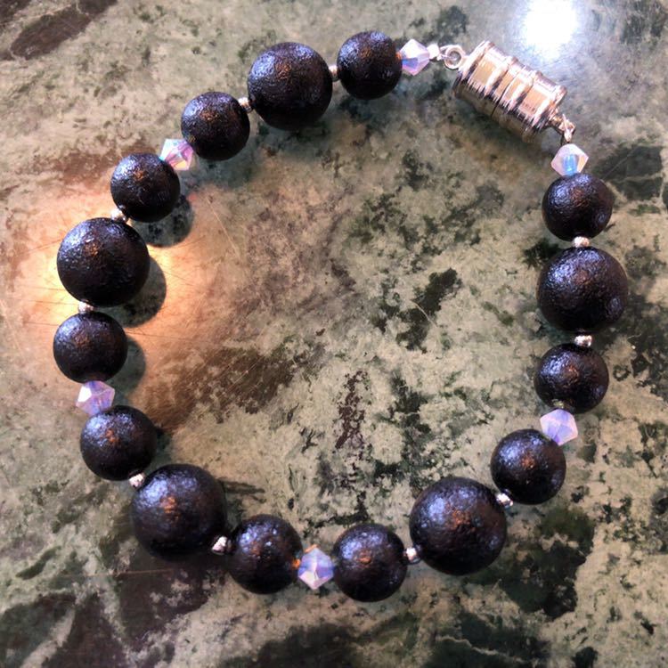 - 【新品】シュガーパールブレスレット★コットンパール フェイクパール 黒 ブラック マグネット式ブレスレット