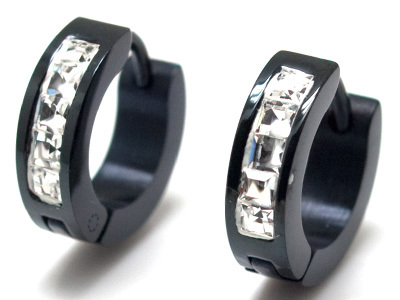 > ★お勧め★手入れ不要★肌に優しい★金属アレルギー&温泉&海水浴ご使用OK★ステンレスピアス★ブラックリング&スクエアカットジルコニア★