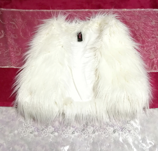 - 白ホワイトフワフワミニベスト/カーディガン/羽織 White fluffy mini vest cardigan