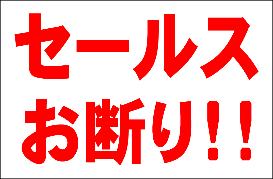 - シンプル看板 「セールスお断り!!」Lサイズ <マーク・英語表記・その他> 屋外可(約H60cmxW91cm)