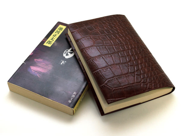 - 送料無料★お手入れいらずのリサイクルレザーで作ったブックカバー★文庫版 500ページ程度対応★クロコ型押しブラウン