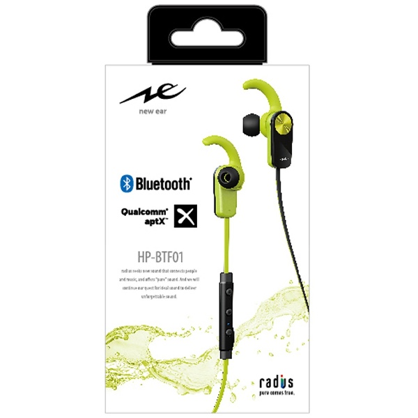 - ラディウス ワイヤレスインナーイヤーヘッドフォン HP-BTF01G ライムグリーン 新品