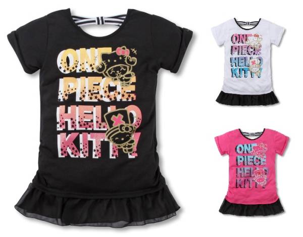 - ハローキティXワンピース リボン付チュニック フリル150黒ピンク
