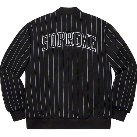 > 希少★新品本物【黒★M】★Pinstripe Varsity Jacket ピンストライプ バジティアーチロゴ 正規店購入 シュプリーム 入手困難 Supreme 19S/S