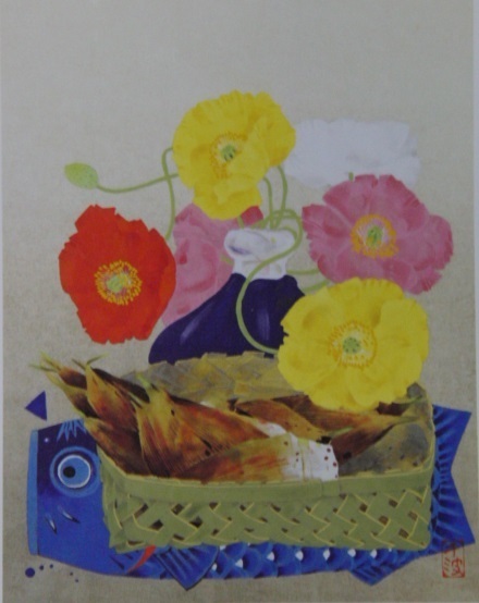 - 中島千波、こいのぼりと花、希少画集画、 新品高級額付、送料込み、iafa