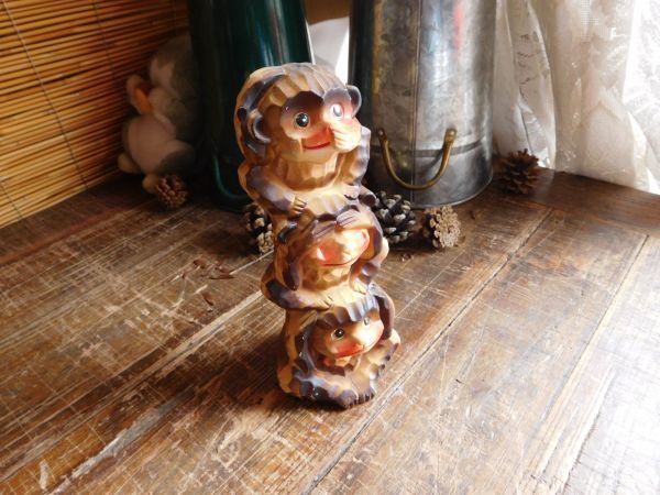 - 昭和レトロ 三ザルNO.3 陶製W8D5H19CM トーテンポール 見ざる 聞かざる 日光東照宮
