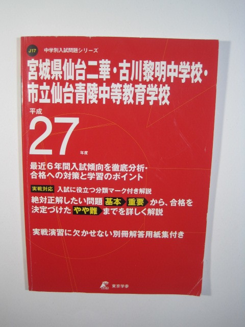 > 東京学参 宮城県仙台二華 古川黎明中学校 市立仙台青陵中等教育学校 平成27 2015 仙台二華中学校 (解答用紙欠品)仙台二華中学
