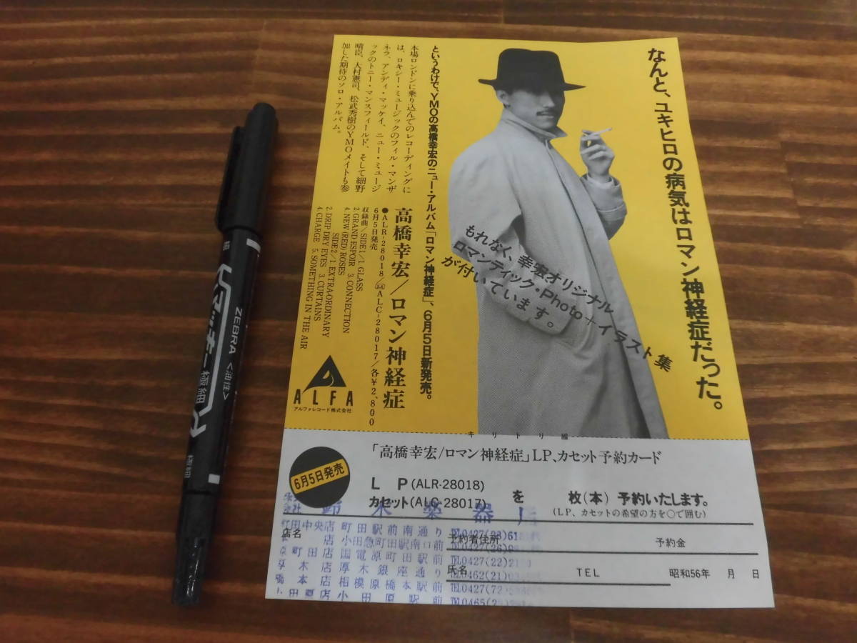 - 高橋幸宏 YMO 昭和56年 ロマン神経症 LP カセット 予約カード イエロー・マジック・オーケストラ B21