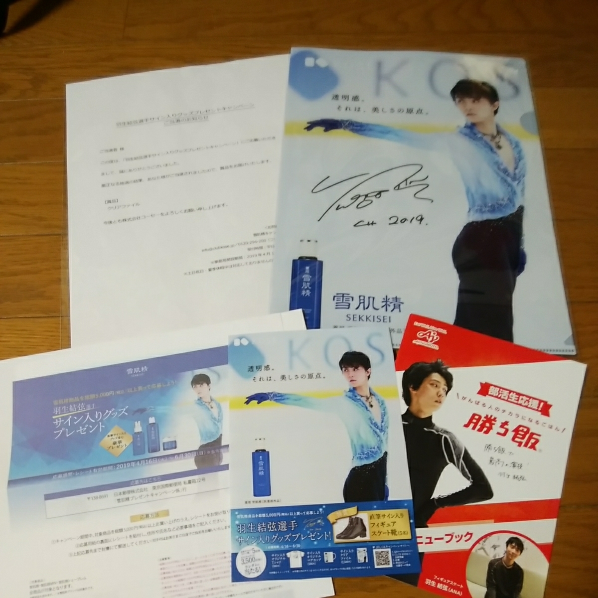 - 即決! 当選品 羽生結弦 コーセー 雪肌精 クリアファイル&POP&勝ち飯メニューブック&ポストカード