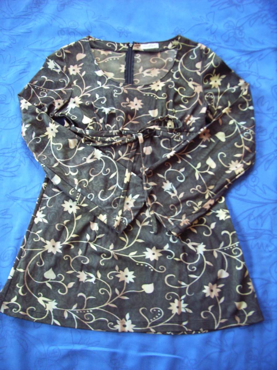 - 黒×茶 花柄 チュニック 長袖