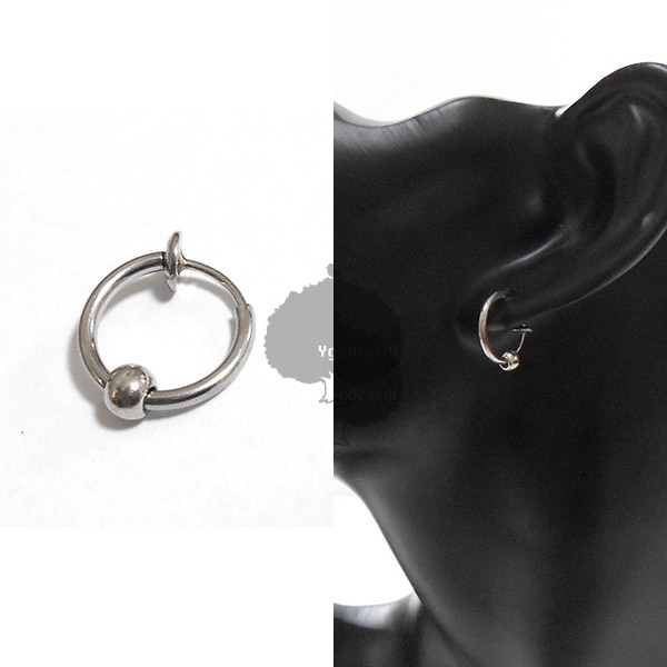 > YGG★新品 ワンボール付き フープ イヤリング フェイクピアス シルバー 男女兼用 リング 13mm 1個 片耳 バネ式 スプリング式