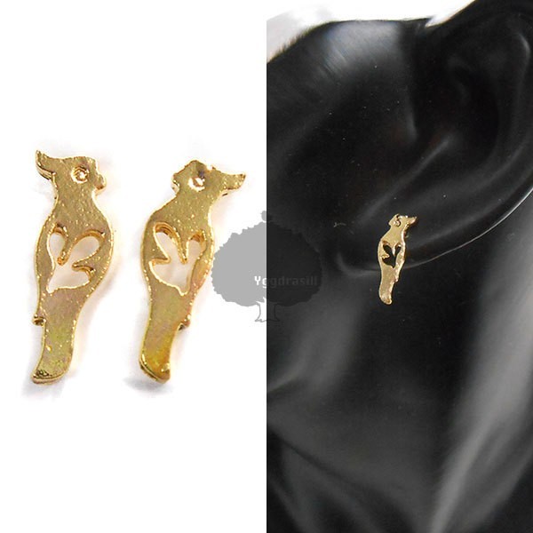 > YGG★新品 オウム モチーフ ピアス ゴールド 金 鳥 トリ バード 両耳用 ペア カジュアル インコ レディース ペット