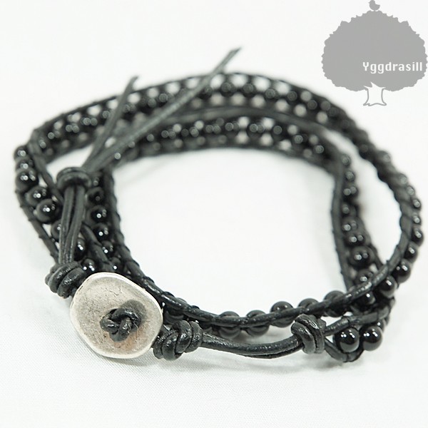 > YGG■新品 オニキス 2連 ブレスレット 天然石 黒 ブラック 腕周り 15cm~21cm 幅7mm 男女兼用 プチプラ アクセサリー バングル