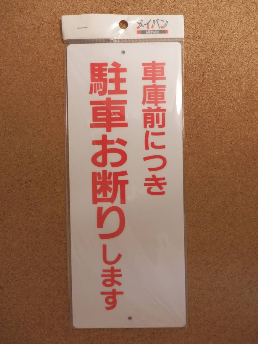 - ①保管品新品★メイバン 「車庫前につき駐車お断りします」 プレート ホワイト×レッド