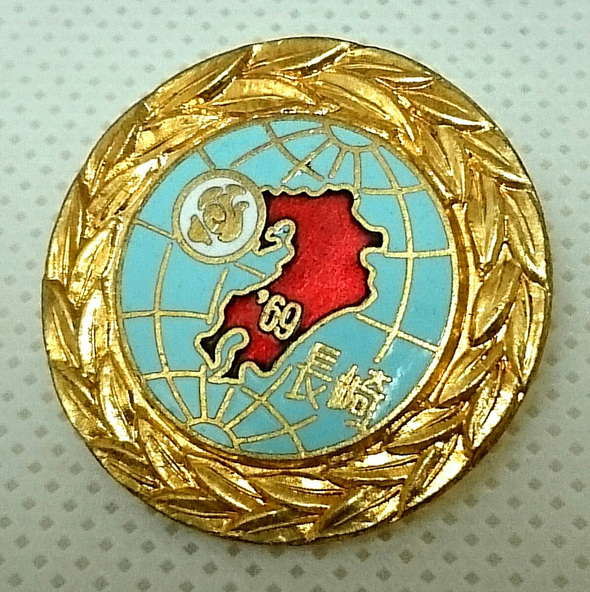 - 【激レア・当時物!】金ピカ縁取りがゴージャス♪ 1969年 長崎国体 記念ピンバッジ ピンズ 長崎県 国民体育大会 スクリュー式ピン