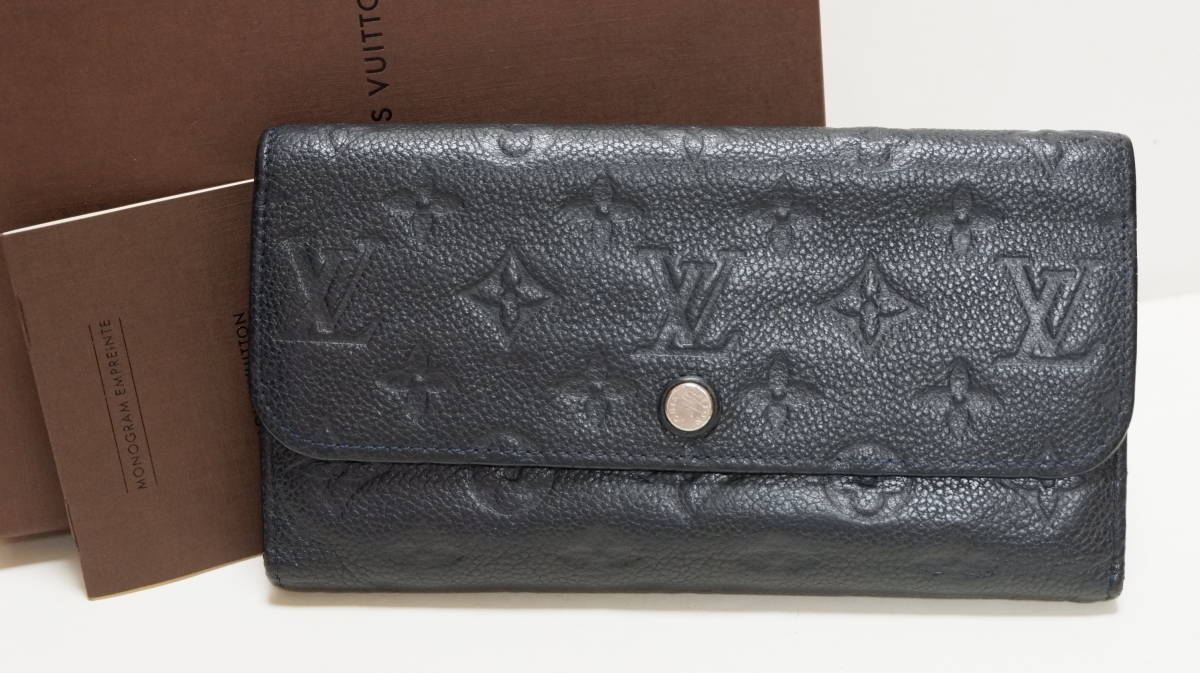 > ◎値下げ税込特価◎ルイヴィトンLouisVuittonアンプラント黒(紺)系三つ折り長財布良品★Used★