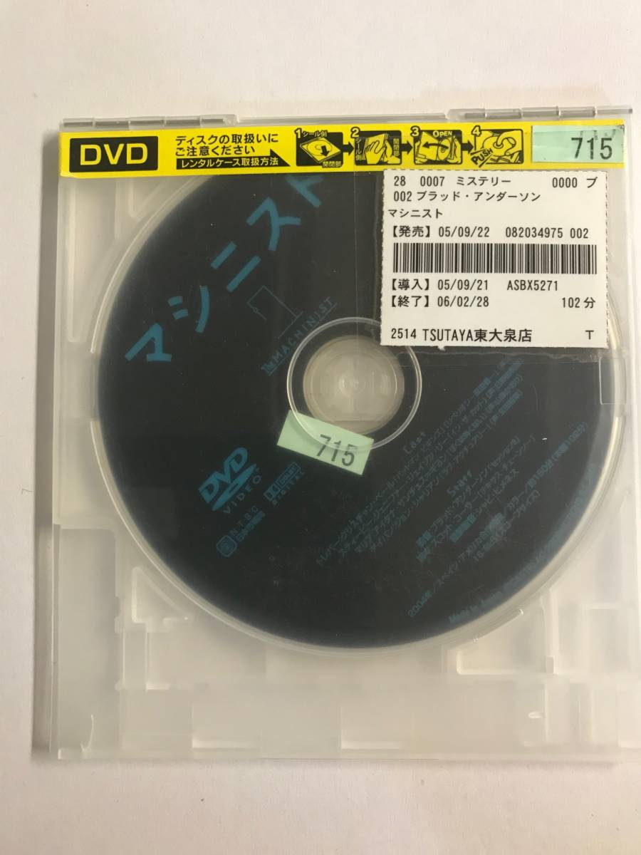 - 【DVD】マシニスト クリスチャン・ベール【ディスクのみ】【レンタル落ち】@36-3