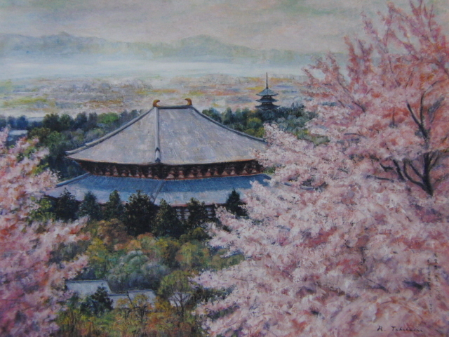 - 高橋里謡子、【青によし寧楽の都は】、希少な額装用画集より、美品、新品額装付、インテリア、春、桜、coco